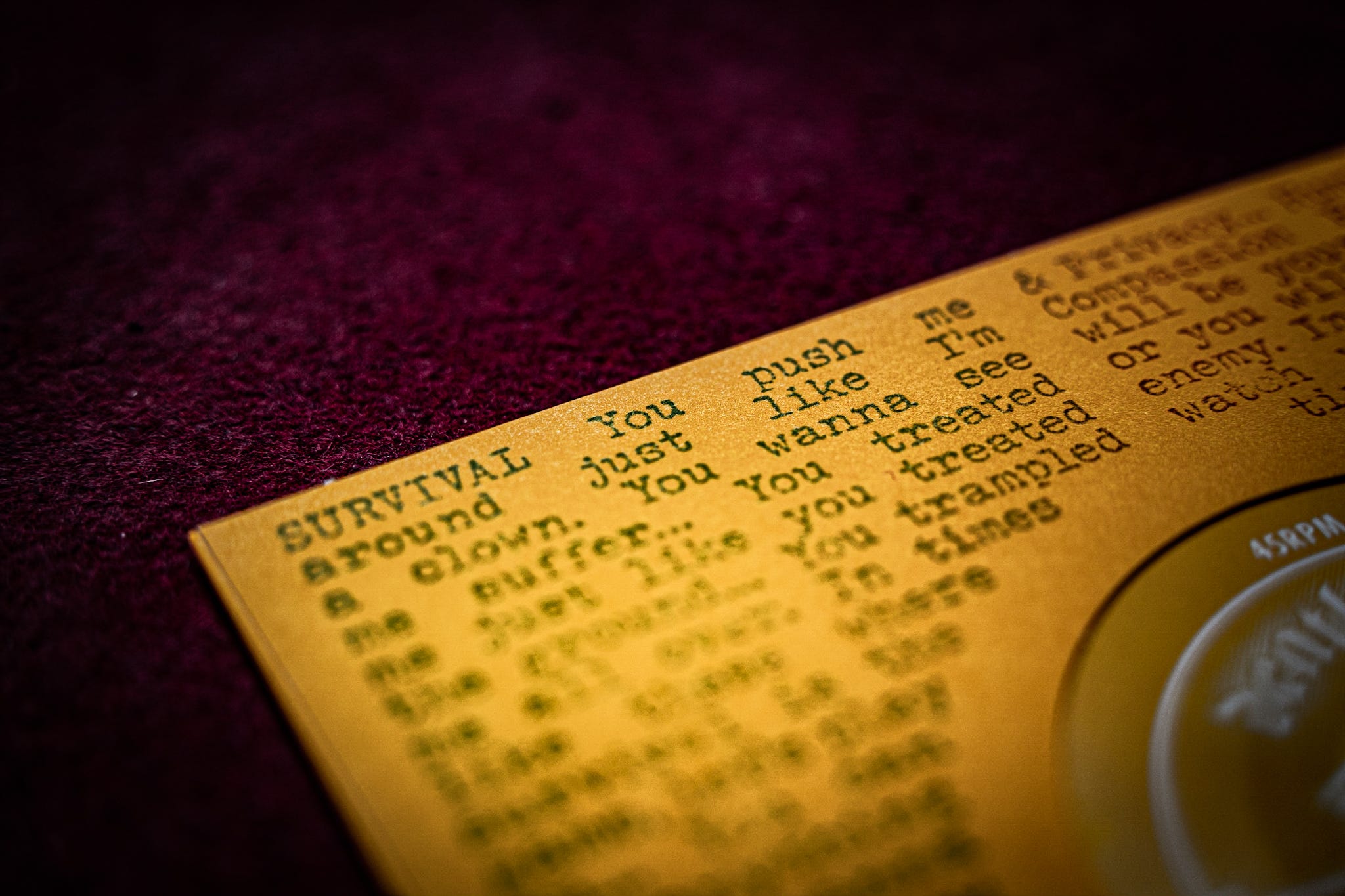 The first release in the Tribulation Worksongs series, featuring the excellent Feels Like End Times on side A and Lonesome Valley Ammunitions as a B-side, was released upon the world. Far be it from me to regurgitate press releases, but the premise is worthwhile: every cover and label of every copy is hand stamped by the good people at Deathwish Records, which released the 7”. Creating a tangible trail of its creation through known labour is certainly a worthwhile endeavour and worth emphasising, but it’s only one facet of this diamond, and for me by far the least interesting.