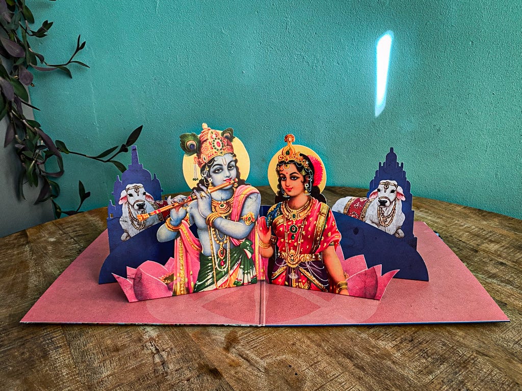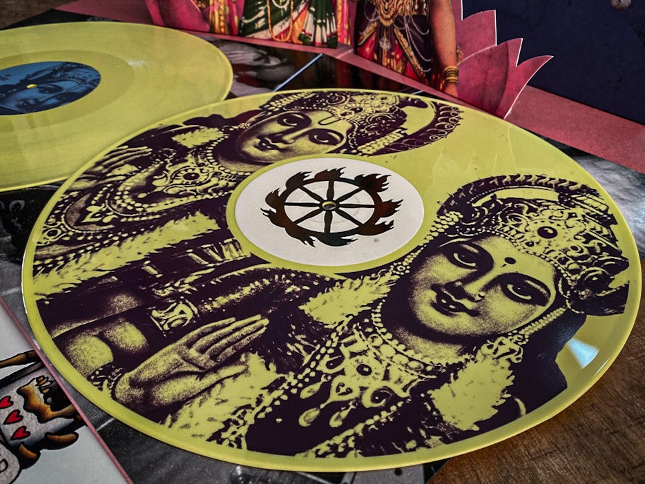 And so, between fulfilment of a basic spiritual need and the opportunity to be a dork, I found myself hunting for Bhagavad Gitas, Srimad Bhagavatams, Opanisads and whatever other Vedic scriptures I could get my hands on to study. Quickly, tales of Arjuna, Jagannatha, Sri Radha and more became less of a mystery to me. And for sure: part of that wild hunt was also more Shelter records.